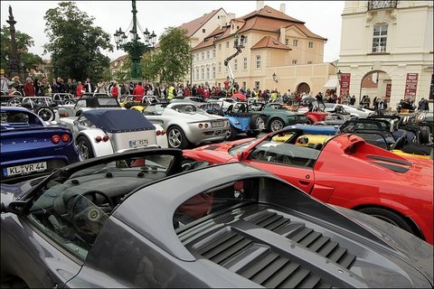 86 Lotusů Super Seven z 9 evropských zemí. Ohromně mě potěšilo, že se přišlo předvést 15 okatých dandíků