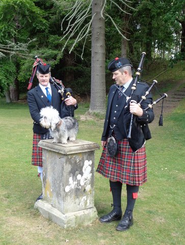 neděle - Selkirk, historická soudní budova Sira Waltera Scotta, Haining - slavnostní pochod účastníků za doprovodu skotských dudáků k místu odhalení bronzové sochy "Old Ginger", prvního známého dandíka. Odpolední "dandie derby" - skvělá zábava pro dandies a jejich páníčky. Celkový počet účastníků odhaduji na 150 z 10 zemí a dandíků také asi 100 - prostě nádhera!